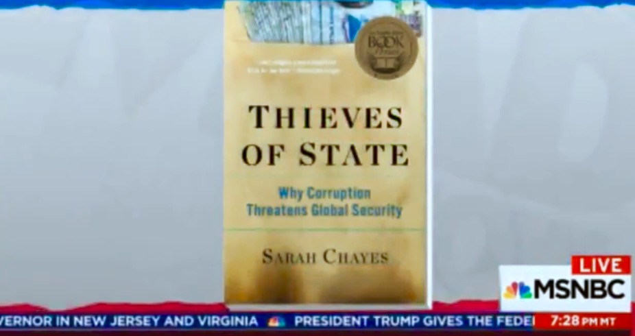Sarah Chayes, on TRMS: https://m.youtube.com/watch?v=pN_LFIgSozA