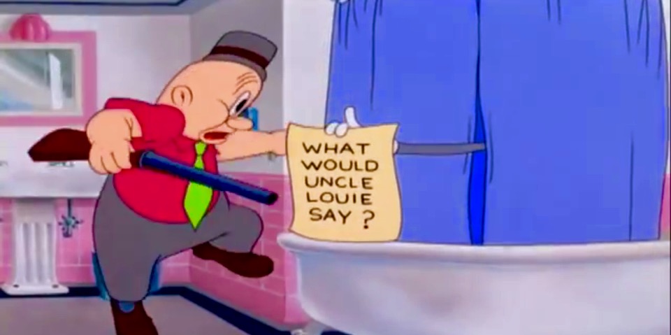 — I am fixed on making this bomb blow up, one sledge hammering tweet at a time… Merrie Melodies still courtesy of the Interwebs… and: A Fallin Hare. —_—. Uso justo de todas las liebres.