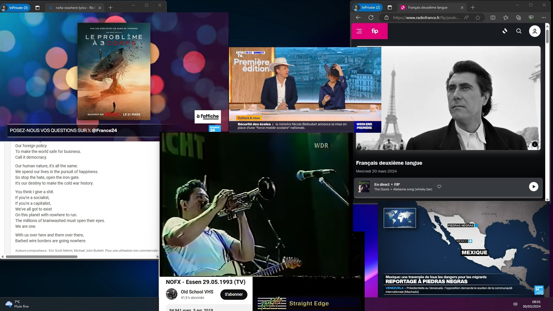 Sources close to Roxy Music relay that Fat Mike moonlighted as ol’ Dippermouth Satchmo in Essen, and unbeknownst to them Krouts that Beaner is a pretty good metal player, Aussi.