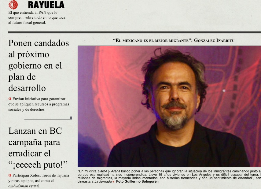 ISSY don Memo… El Club de Axolotls de Kansas City nos ha hecho saber que por favor le solicitemos a usted y a Sean Penn, que para las próximas Tangentes o aristas circunstanciales en sus películas, por favor hagan ustedes referencia a los atropellos de los monstruos (algunos hasta Dinosaurios) del país que a usted lo vío nacer… y de Sean Penn mejor ya no digo nada, porque don Eric del Castillo se nos puede volver a morir, y a parte aparte, Madonna se molesta.