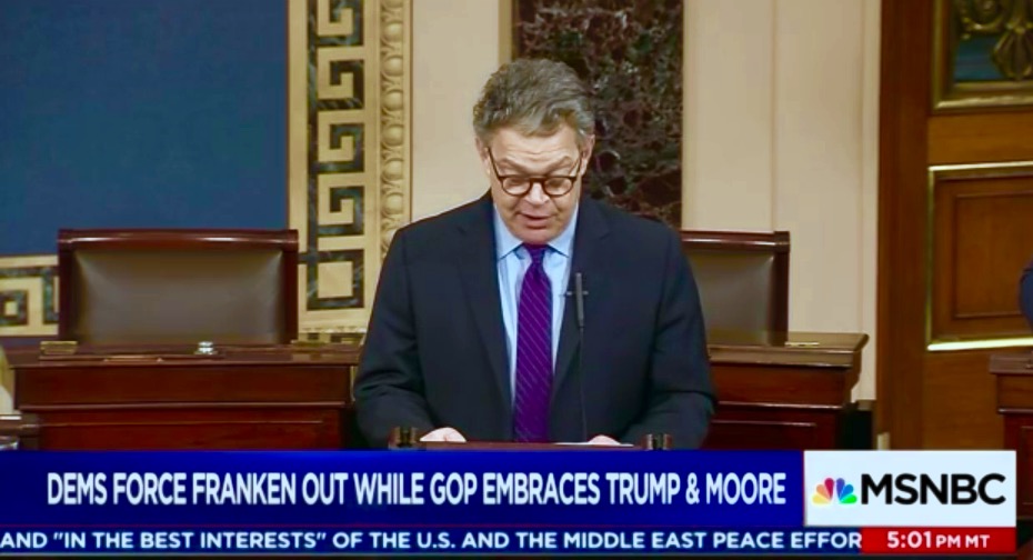 … “It takes two to Tango,” and “Don’t take a Knife to a Gunfight”. •—_¡_—• Too bad that Senator Franken is actually throwing in the towel, in any other political year his resignation from the Senate would be the right pennance to pay for being a sophmore wiseass, but being that we [the U.S.] are having to deal with the repercussions of Billy Bush’s ‘pussy-grabbing Pandora bus interview era’ maybe — just maybe, Sen. Stewart Little should reconsider his resignation from the actual halls of power that can get this sorry excuse for a President of the United States of America out of Office… “because, darn it, Al —you are good enough”. FINISH YOUR TERM and let the NEXT BALLOT BOXES in your District decide your political fate.