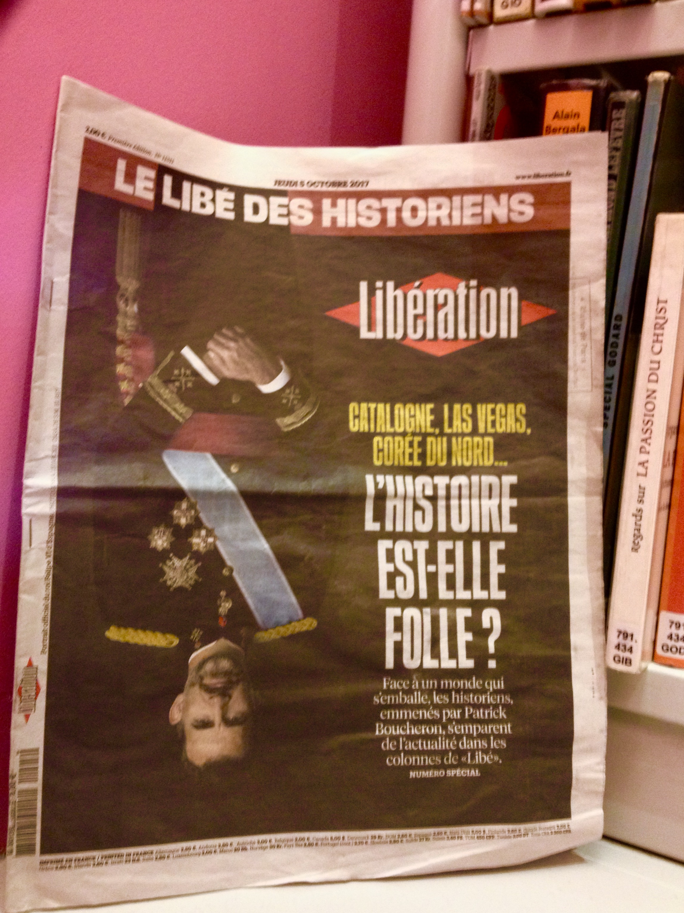 … Frequency Hop, ahora regresamos a nuestra previa programación sobre lo que en la historia pasó en una semana como la que en este fin de semana termina; pero primero licenciado Brozo, ya vio asté como hasta los franceses la riegan, mire nada mas de que manera los artistas gráficos de Libération plasmaron ‘patas pa’rriba’ al Rey de España, ¡Chihuahua!. Han de haber andado locos o algo así (insert laughter track for the U.S. viewing audience)… ANYGÜEY licenciado sobre aviso las memorias se relatan mejor y en ese tenor aquí tiene asté lo que pasó en un día como el de ayer (en Cataluña) pero ¡CON UN INTERVALO DE 492 392 años!… nada mas que para que este pinche pié de foto (al revés) no le quede a usted tan aglomerado, aquí abajo del cuadro le voy acomodando las efemérides. ¿Vale, májete?