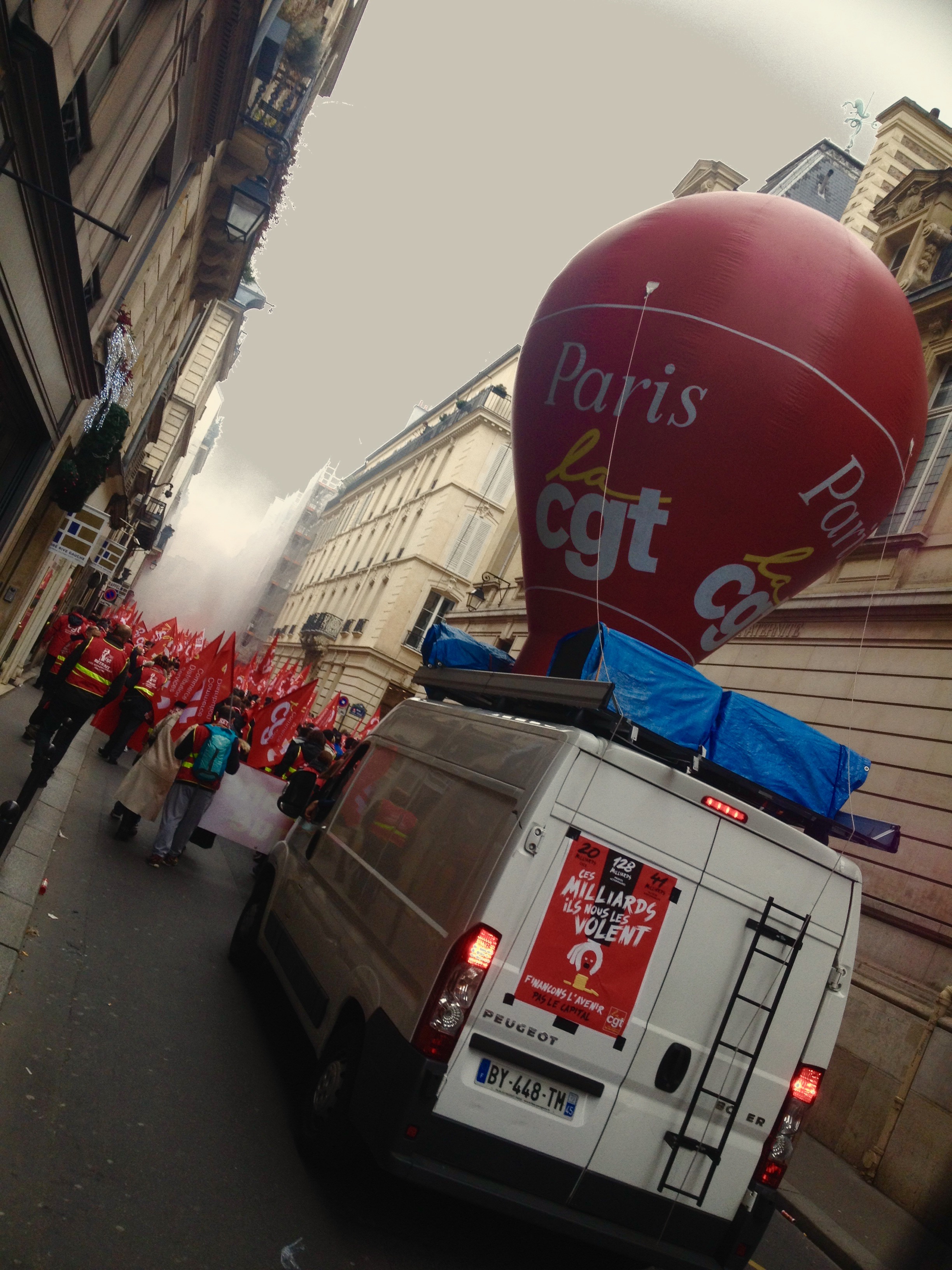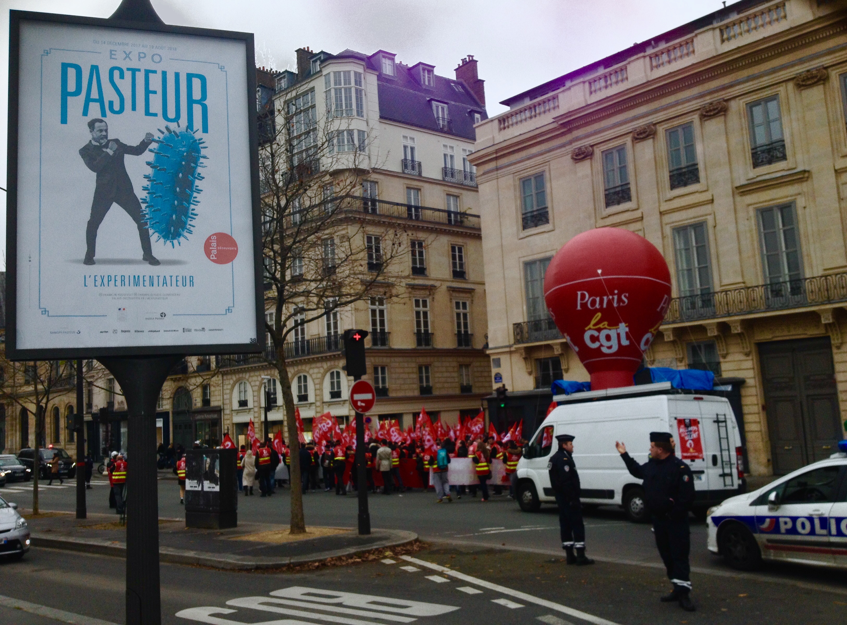 En París hoy estuvo nublado, y como a eso del mediodía, nos encontramos con distintos sindicatos de trabajadores del sector de tiendas de auto servicio; venían de ‘quién-sabe-dónde’, e iban ‘sabrá-quién-sabe-quién’ a cuál punto de la ciudad, pero eso es lo de menos, porque lo importante es de que el ruido del descontento laboral, como La Caravana, Pasa. •—_!_—• Rue de Saints Pères, casi esquina con Le Carré Rive Gauche, Les Antiquaires et Les Galeries de Art, 75007. •—_!_—• Foto por segoviaspixes. 20/12/2017