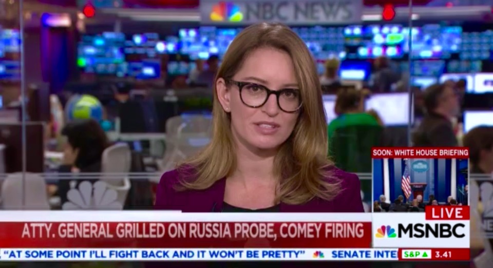 Oh, hey–Hallie Jackson, what’s up? How did the Jeff “Side Show” Sessions round of Senate Judiciary Committee hearings go? Like asking questions to a wall made of stone, we reckon? It seems that no matter how much the democrats organize to stomp the Trump presidency, his minions will always “out organizeg” any form of inquiry, and Halley, it seems to us [here at staff] that in that process the Trump machine somehow convinces the the jury (the majority of the Republican Party) that down–is–up and down–is right.